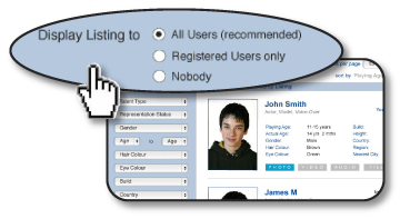 Your profile page can only be accessed by registered casting professionals (or by people with whom you share your Viewing PIN). However, you also have full control over who can see your basic listing.